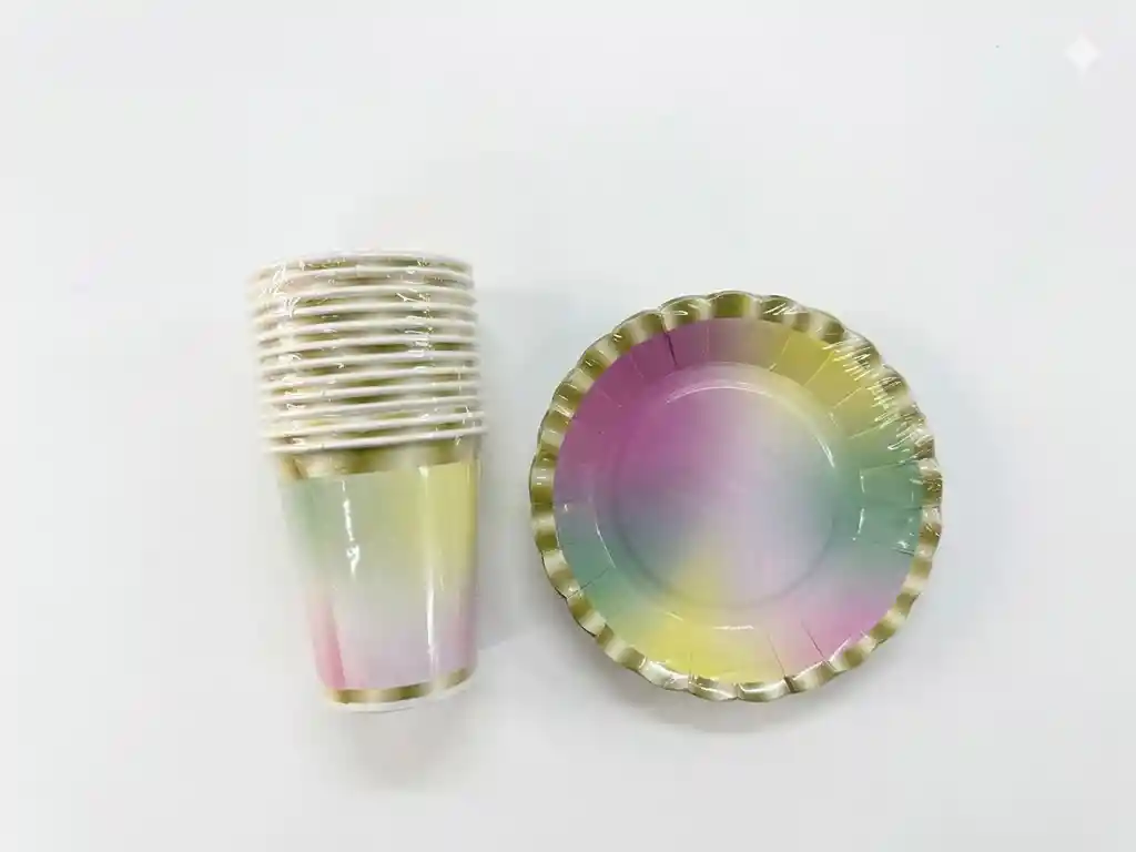 Set 10 Platos Torta, 10 Vasos Desechables Cartón De Colores Surtido Agregar a favoritos