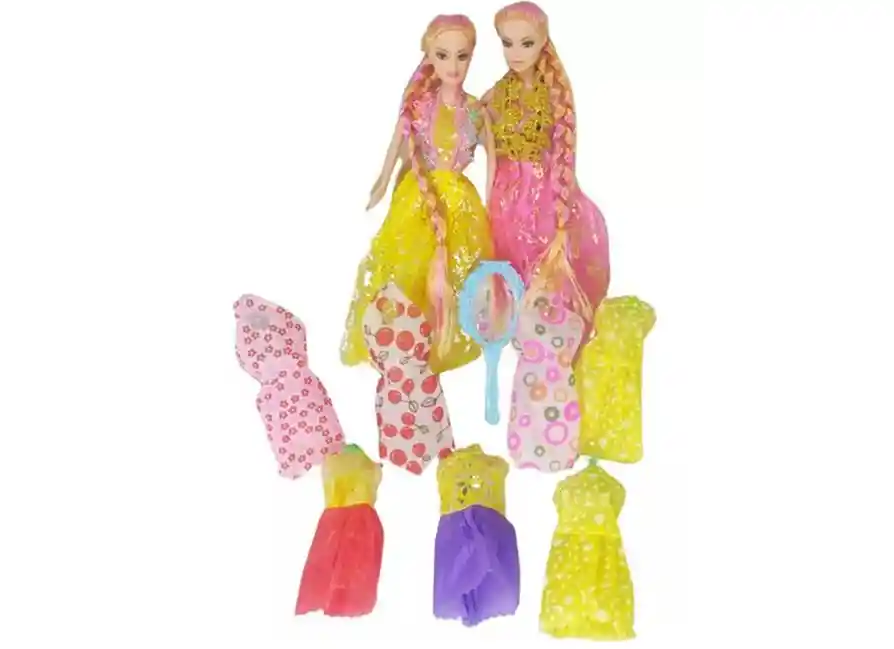 Somos: Inversiones MAZUGI SET 2 MUÑECAS, 7 VESTIDOS Y 1 ESPEJO DE JUGUETE Hechas de plástico Medidas Alto: 27,8cm Largo: 4,5cm Ancho: 8cm Presentación en caja