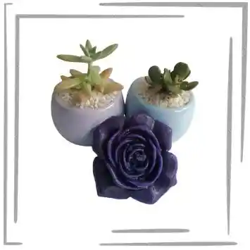 Set Incluye 2 Unidades:de Planta suculenta + Vela 1 Und de Vela Perfumada en Forma de Rosa Flotante. Un Bonito Regalo Para Dar en un Momento Especial. Incluye Bolsa de Regalo