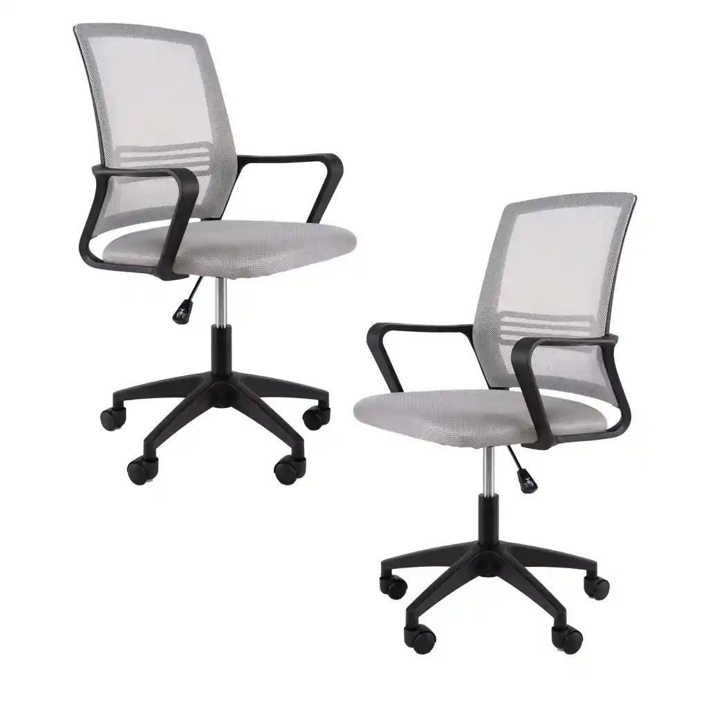 KIT de 2 Sillas de Escritorio para Oficina, estilo moderno y minimalista con revestimiento transpirable y cómodo acolchado en el asiento. Gracias a su diseño práctico y cómodo se convierten en las sillas perfectas para pasar sentado largas jornadas laborales o de estudio sin preocuparte por la incomodidad o cansancio. Su diseño ergonómico es amigable con tu espalda, podrás evitar lesiones y reducir dolores musculares causados por pasar mucho tiempo sentado. Ideal para tener en cuartos de estudio y cualquier tipo de oficina. De altura regulable, con 5 ruedas antirayas de 360 y respaldo ergonómico en la parte lumbar. Su tela transpirable permite la circulación del aire en la zona de la espalda y el asiento. Encuentra todo lo que necesites para tu hogar en los productos de Big Room. Un mes de garantía por defecto de fabricación.