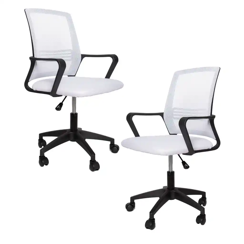 KIT de 2 Sillas de Escritorio para Oficina, estilo moderno y minimalista con revestimiento transpirable y cómodo acolchado en el asiento. Gracias a su diseño práctico y cómodo se convierten en las sillas perfectas para pasar sentado largas jornadas laborales o de estudio sin preocuparte por la incomodidad o cansancio. Su diseño ergonómico es amigable con tu espalda, podrás evitar lesiones y reducir dolores musculares causados por pasar mucho tiempo sentado. Ideal para tener en cuartos de estudio y cualquier tipo de oficina. De altura regulable, con 5 ruedas antirayas de 360 y respaldo ergonómico en la parte lumbar. Su tela transpirable permite la circulación del aire en la zona de la espalda y el asiento. Encuentra todo lo que necesites para tu hogar en los productos de Big Room. Un mes de garantía por defecto de fabricación.