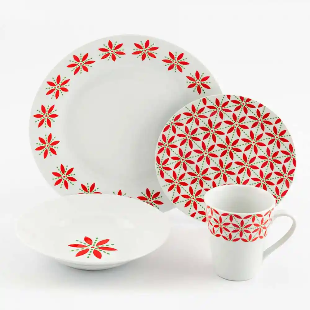Set 2 Vajillas de Navidad Expressions Christmas Diseño Poinsettia, Cada caja incluye: 4 platos, 4 platos hondos, 4 platos ensalada, 4 tazas 11oz, Material: 100% porcelana . Resistente a arañazos sku: 227923