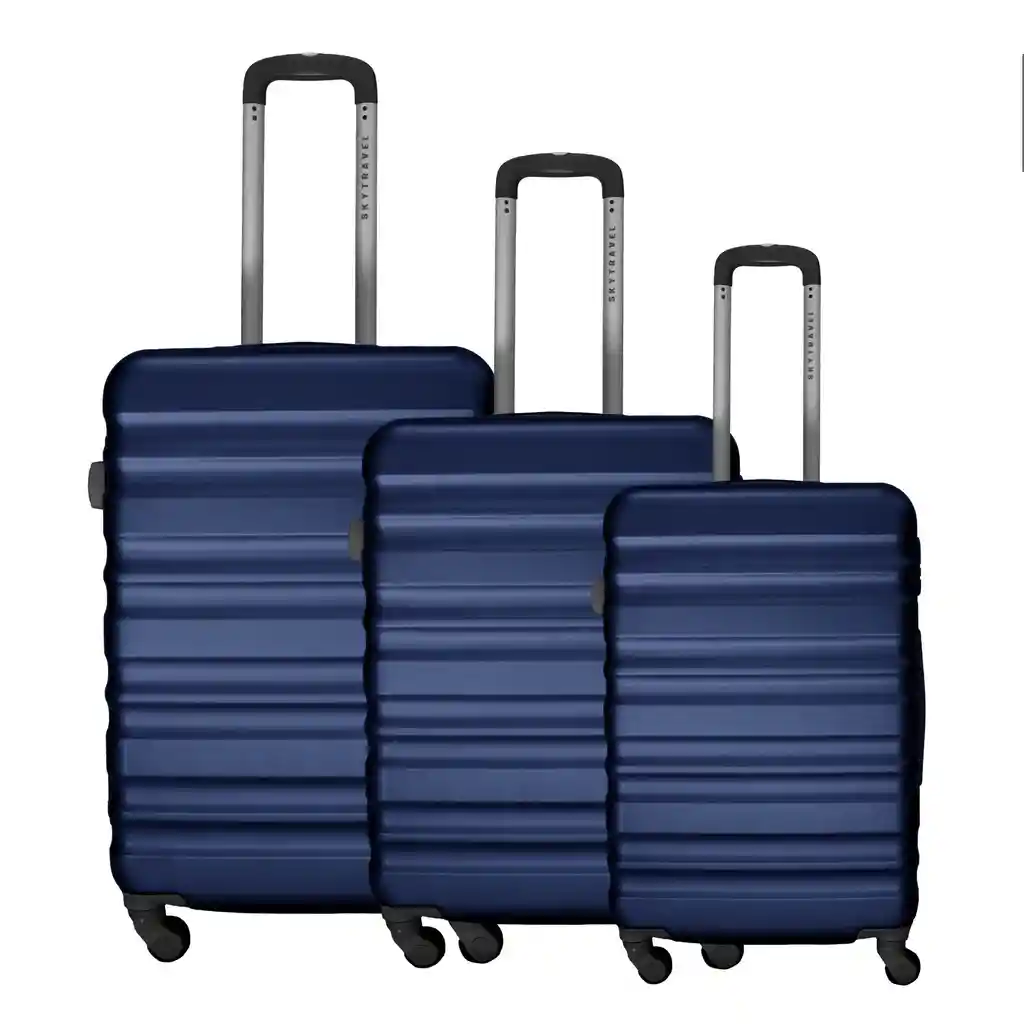 Viaja con este hermoso set de 3 maletas, fabricado con materiales de alta calidad. Este juego es perfecto para el viajero serio y experimentado, con su diseño simple, elegante y práctico, con cubierta texturizada para evitar que se raye, fabricado con el mejor policarbonato resistente, ofrece mayor durabilidad. No tendrás que batallar a la hora de empacar, con la abertura de 180 grados desde el centro, facilita el trabajo de empacar y cerrar la maleta. Diseño inteligente y amplio espacio en su interior hecho de un elegante forro y con correas para ajustar. Con sus ruedas spinner que giran 360 grados, hará más fácil el traslado. No dejes la practicidad, tus maletas son el primer paso para un viaje inolvidable. ¡Viaja con ESTILO! Kit de Maletas de SKYTRAVEL de 3 tamaños: 28", 24”, y 20” pulgadas, ideales para llevar en avión, camión o coche. Diseño es apto para todas las edades. ¡Sumamente RESISTENTES! Confeccionadas con materiales duraderos y confiables como el plástico ABS rígido, forro con cierre y resortes para mantener en orden el equipaje. ¡Ruedas GIRATORIAS! Con ruedas dobles multidireccionales (360°), perfectas para deslizarse sin ningún esfuerzo. Ruedas no desmontables. ¡FUNCIONAL y CONFIABLE! Con asas dobles para mayor comodidad, mango principal retráctil, asa secundaria fija a un costado para facilitar su carga a mano. Cuentan con candado de combinación para mayor seguridad. ¿QUÉ INCLUYE? 1 Maleta 28" Pulgadas [67 x 47 x 28 (alto x largo x ancho)] 1 Maleta 24" Pulgadas [57 x 40 x 24 (alto x largo x ancho)] 1 Maleta 20" Pulgadas [48 x 34 x 21 (alto x largo x ancho)] 30 días de garantía por defecto de fábrica. No palica en mal uso del producto.