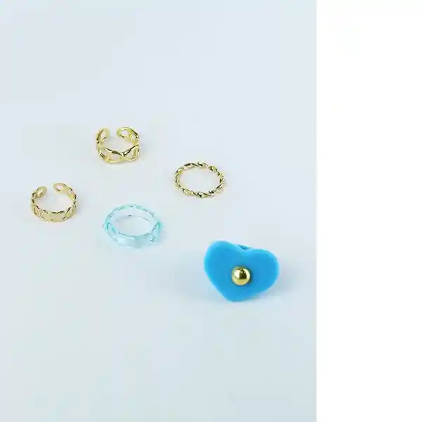 Set Fuxia Contiene 5 Unidades: Anillos Fantasía. Tres Anillos en Fantasía Dorada. Un Anillo en Pasta. Un Anillo en Pasta Corazón.