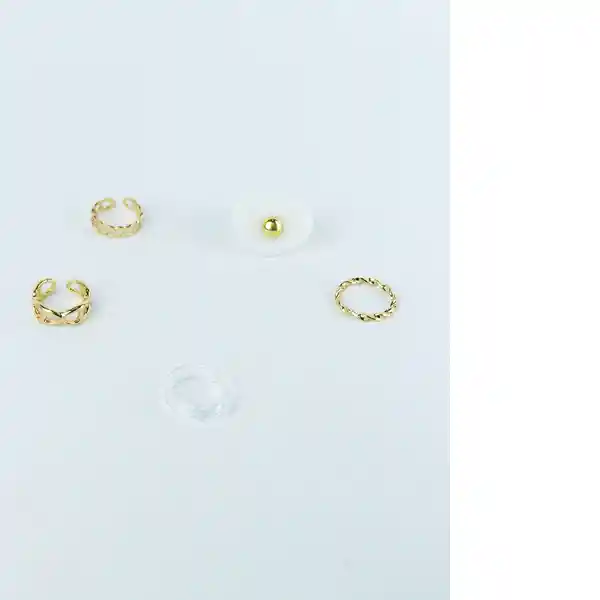 Set Fuxia Contiene 5 Unidades: Anillos Fantasía. Tres Anillos en Fantasía Dorada. Un Anillo en Pasta. Un Anillo en Pasta Corazón.