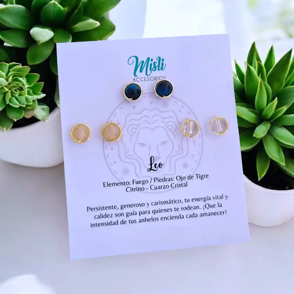 ¡Descubre la combinación perfecta entre estilo y astrología con nuestro set de aretes en piedras y cuarzos naturales, cada uno diseñado según tu signo zodiacal! Las piedras asociadas al signo LEO son: -Ojo de Tigre: Equilibrio y valor. -Citrino: Abundancia y optimismo. -Cuarzo Cristal: Salud y vitalidad. Estos aretes no solo complementarán tu outfit, sino que también reflejarán tu personalidad única y tu conexión con el cosmos. Desde el apasionado Aries hasta el enigmático Piscis, cada par está elaborado para celebrar tu individualidad y elevar tu estilo a nuevas alturas. ¡Haz una declaración de moda con cada par y deja que tu luz interior brille con cada uso! Nos mantenemos a tu disposición para resolver cualquier consulta o brindarte información adicional que requieras. ¡No dudes en contactarnos, estamos para ayudarte en todo lo que necesites!