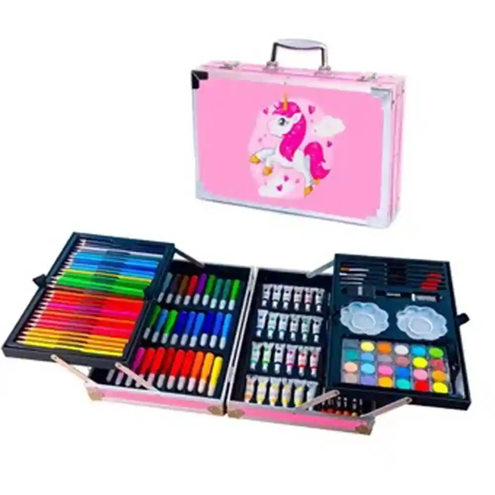 Set Arte 145 Pzs Kit Colores Dibujo Pintura Acuarela Colorido juego completo de 145 piezas: El juego de arte y creatividad incluye 28 lápices de colores, 24 pasteles al óleo, 24 pinturas de acuarela, 33 pinceles de acuarela, 24 tipos de pasteles, 4 lápices de dibujo de línea, 2 paletas, 2 lápices, 1 sacapuntas, 2 gomas de borrar Estimular la rica imaginación artística de su hijo: El dibujo puede estimular eficazmente la imaginación de su hijo, ejercitar su creatividad, mejorar el conocimiento en todas las áreas y promover la mejora de la inteligencia. Enseñe a su hijo a sostener un pincel, dibujar y acompañar a su hijo a crecer feliz Fácil de llevar: Este estuche de aluminio de lujo cuenta con un diseño plegable para un fácil almacenamiento. Es fácil de llevar cuando salga y adecuado para la representación de la hermosa naturaleza al aire libre cuando se viaja Protección del medio ambiente materiales seguros para niños: Conjuntos de arte de pintura hechos de materiales respetuosos con el medio ambiente, utilizando materiales completamente no tóxicos, seguros y respetuosos con el medio ambiente, y pasaron estrictas pruebas de calidad Ideal para niños: Este conjunto de lápices de acuarela es adecuado para principiantes y artistas. Puedes usarlo en casa o en las clases de arte de la escuela. Lo que obtienes con tu compra: 28 lápices de colores 33 marcadores de acuarela 2 paletas en forma de flor de ciruelo 24 bloques de acuarela 4 pinceles 24 crayones 24 tubos de pintura acuarela 2 gomas de borrar 2 lápices de dibujo 1 sacapuntas 1 estuche de aluminio Tamaño: 34 x 25 x 8.5 cm(1.78kg) NOTA IMPORTANTE: Las figuras o dibujos en el exterior del maletín pueden variar, sin cambiar el color ya asignado en la publicación.
