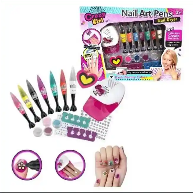 ¡COMPRA SEGURO, EMPRESA CON SERIEDAD Y COMPROMISO! Arte de uñas único para niñas. Deja que su toque artístico brille cuando crean su propio arte de uñas, incluyendo 7 bolígrafos de cepillo para polvo de uñas de diseño único, cada uno viene en diferentes colores, 1 secador de uñas. 4 purpurina de colores diferentes. 1 lima de uñas. 2 puntas separadas y varias calcomanías. Aspecto profesional. Con fabulosas pegatinas, las niñas pueden crear diseños profesionales en sus uñas o practicar con amigos. Deja que configuren su propio estudio de uñas en su recámara. Pasarán horas desarrollando diferentes estilos y diseños.