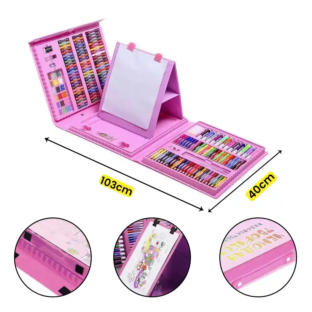 EL KIT DE ARTE 208pcs INCLUYE: 48 x Crayones pasteles oil 36 x tubos acuarela 30 x Clip de papel 24 x lápices 24 x lápices de color 18 x tortas de acuarela 1 juego x papel A4 1 x pegamento líquido 1 x goma de borrar 1 x lápiz sacapuntas 1 x dibujo lápiz 1 x lápiz 1 x paleta 1 x pegamento blanco 1 caballete de doble cara!