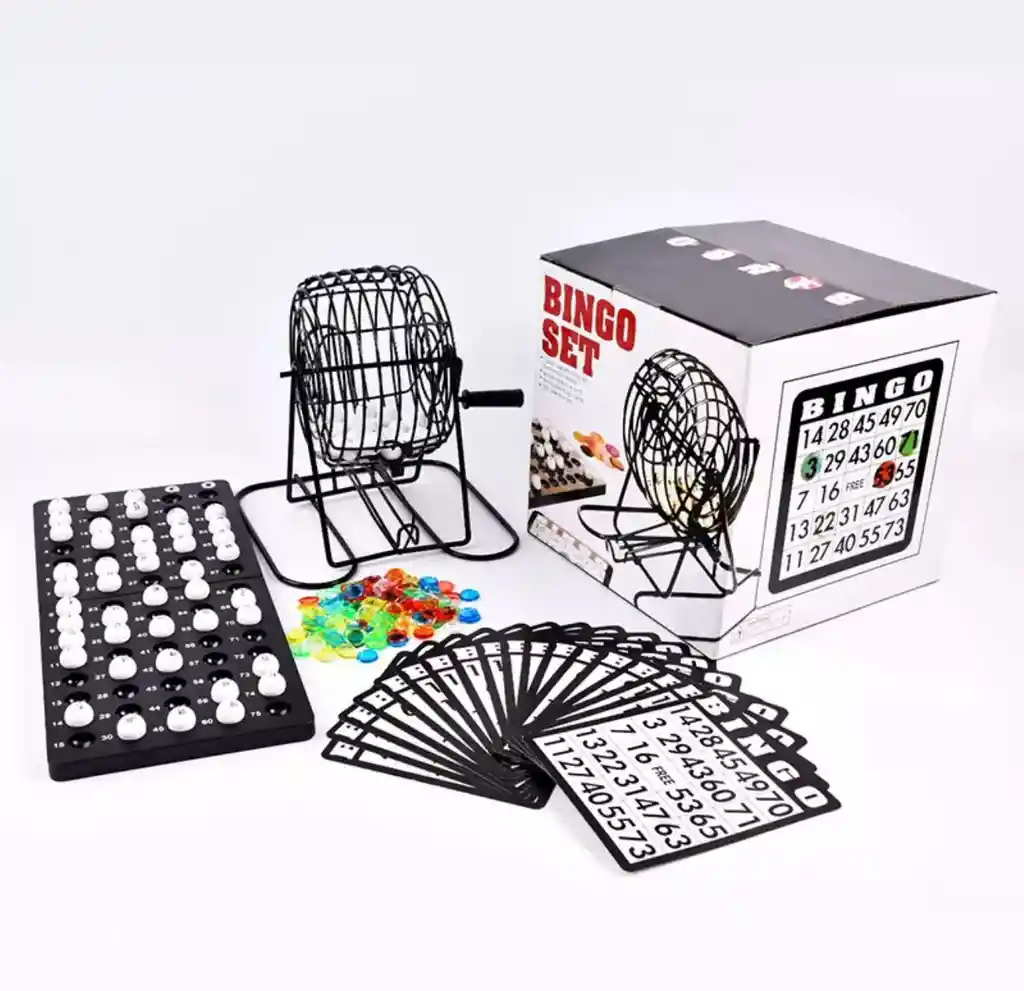 BINGO METÁLICO GRANDE Incluye: 18 cartones 75 balotas 150 tapitas Descubre el Bingo Grande Lujo, un juego de mesa clásico que promete horas de diversión en familia y con amigos. Diseñado por Macrooutlet y publicado por Machine, este juego es ideal para adultos y niños a partir de 6 años, permitiendo que de 2 a 18 jugadores participen en emocionantes rondas de bingo. El set incluye 18 tarjetas y 75 balotas numeradas, garantizando que cada partida sea única y entretenida. Su formato físico y componentes de plástico aseguran durabilidad y facilidad de uso, convirtiéndolo en una opción perfecta para reuniones familiares o noches de juegos. Características: instrucciones en inglés. Para jugar con los amigos: juego de bingo para la próxima excursión o viaje con la familia o amigos. Ideal para transportar: bingo manual pequeño que ocupa poco espacio; cartones reutilizables con fichas. bombo con peana estable y manivela; tablero para dejar las bolas; fichas para tapar. Detalles: bombo metal 20 x 17,5 x 21,5 cm, pesa 1 kg; 75 bolas; 2 tableros; 18 cartones; 150 fichas.