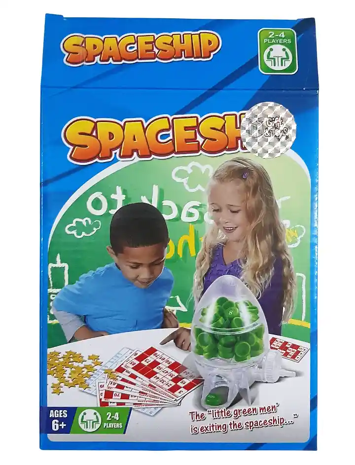 Set de bingo con diseño espacial temático, ideal para darle un toque divertido y original a tus juegos. Incluye balotera, bolillas numeradas y cartones para jugar.