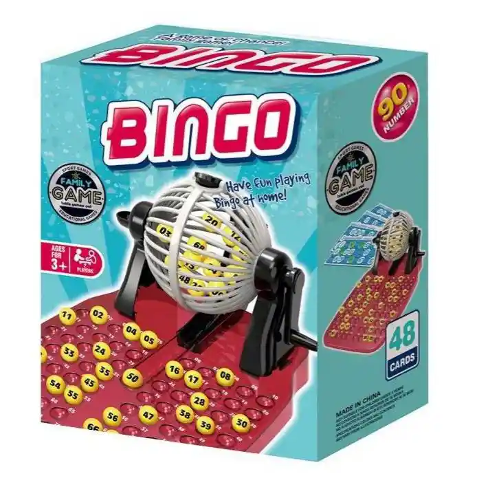¡Juego completo de bingo! Con ruleta, bolas y tarjetones Los juguetes didácticos son objetos diseñados para ayudar (a través de entretenimiento y diversión) al desarrollo de los niños. Su objetivo principal es que los pequeños desarrollen habilidades y conocimientos de forma activa y sobre todo divertida. Estimule su desarrollo físico y mental. Aumente su autoestima. Potencie sus capacidades afectivas y sociales. Estimule su desarrollo físico y mental. Además de pasar tiempo en familia y amigos de una manera diferente y divertida. ¿Cómo se Juega? Un locutor va sacando bolas del bombo, anunciando los números en voz alta. Si un jugador tiene dicho número en su cartón lo tacha, y el juego continúa así hasta que alguien consigue marcar todos los números de su cartón Excelente regalo para toda ocasión¡¡¡ CARACTERÍSTICAS Material: Plástico Máxima calidad Color Negro Balotera, tarjetones y pelotas Familiar, Educativo y Divertido Edad Mínima 5 años Piezas 90 QUE INCLUYE 1 Bingo- Plástico