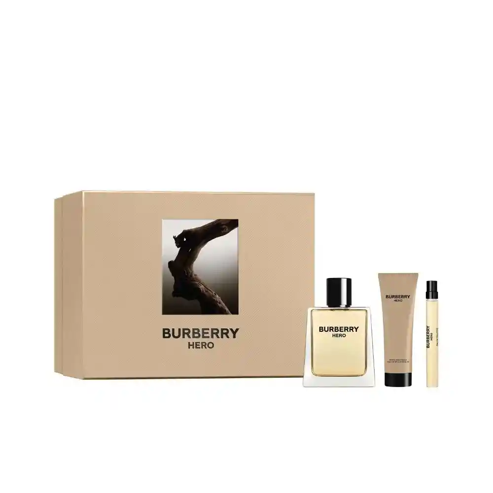 "Celebra la temporada festiva con Burberry Hero Eau de Toilette para hombre, un regalo navideño atemporal para él. Fuerte pero sutil, este aromático y amaderado aftershave presenta notas vigorizantes de enebro, pimienta negra, cedro y bergamota brillante, contenido en una botella de vidrio angular. Este set de regalo de perfume Burberry contiene: - Burberry Hero Eau de Toilette, 100 ml (3.3 oz) - Burberry Hero Eau de Toilette, 10 ml (0.33 oz) - Burberry Hero Gel de Ducha, 75 ml (2.5 oz)"