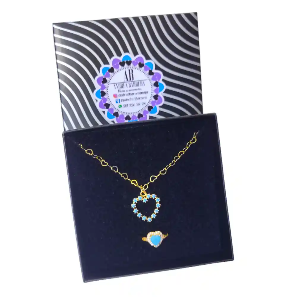 ANDREA BARRERA Moda y Accesorios. Es el regalo adecuado para esa persona importante en cualquier ocasión de sorpresa; día de la madre, aniversario, graduaciones, cumpleaños, amor y amistad, o simplemente para demostrar tu cariño. Material: Rodio. (antialérgico, resistente y brillante). Cadena: 45 cm Dije: 1,57 alto x 1,5 ancho Color: Azul claro Set cadena y anillo. - Set para mujer. - Perfecto para regalos especiales - Joyería exclusiva de diseño actual. Cuidados: • Trátalos siempre con delicadeza y cuidado. • Guárdalos siempre por separado en bolsas de tela, plásticas o en cajitas, alejados del polvo, humedad, sol o luz directa. Así evitarás que se enreden, rayen o que los distintos materiales se manchen entre ellos. • Evita que se mojen, así es que no los uses en la ducha, piscina y playa. El agua, el cloro y la sal los pueden dañar. • No los uses para hacer deportes, el sudor también los puede afectar. • Aplica cremas, maquillaje y perfumes antes de ponerte los accesorios, espera que tu piel esté seca, así los químicos de estos productos no decolorarán ni oxidarán tus complementos. Los accesorios son lo último que debes ponerte. • Evita usar tus accesorios con el pelo mojado o cuando vas a aplicar algún producto. • No los uses cuando realices labores domésticas de limpieza, los productos químicos y el agua los pueden alterar. • No duermas con ellos. • Alterna tus accesorios con frecuencia, así te podrán durar mucho más tiempo. • Para limpiarlos puedes usar un paño suave y seco, del mismo tipo con el que limpias tus gafas, frotando con delicadeza. No uses agua, jabón o detergente.