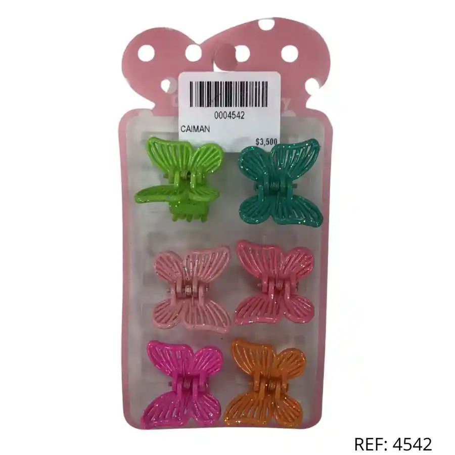 Set de caimanes en forma de mariposa. Colores brillantes para peinados divertidos.