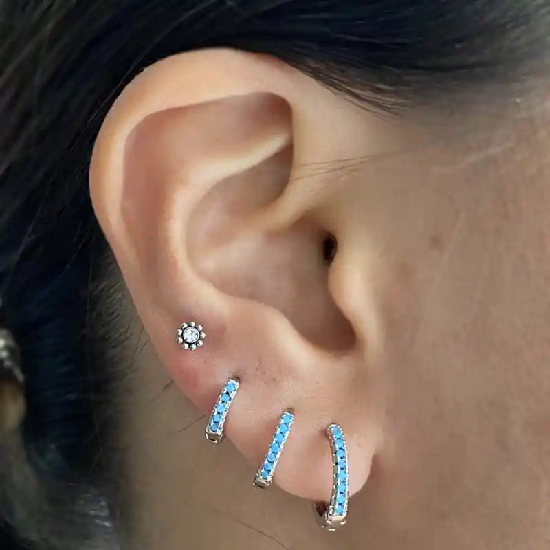 SET DE CANDONGAS X 3 MATERIAL: RODIO COLOR: PLATEADO , CIRCONES AZULES