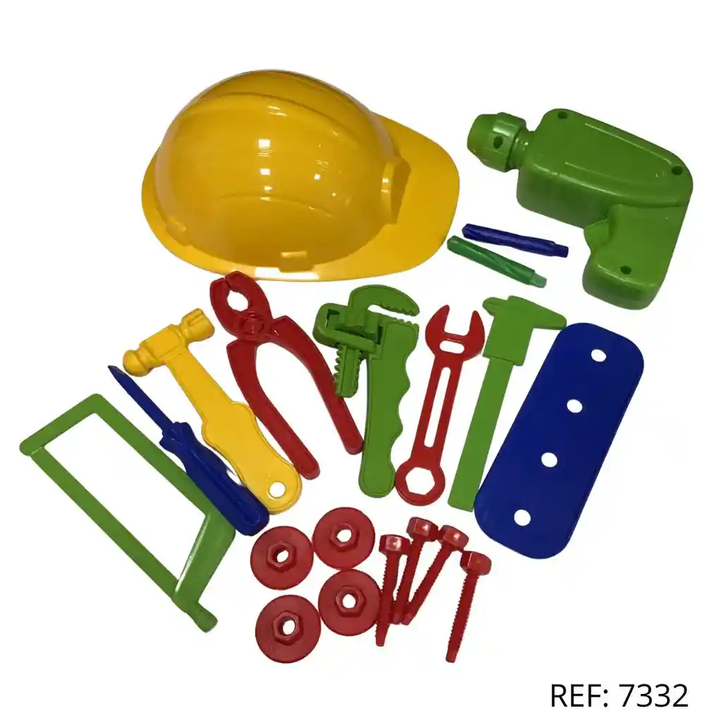 Kit de herramientas con casco para juego de construcción. Ideal para pequeños constructores creativos.
