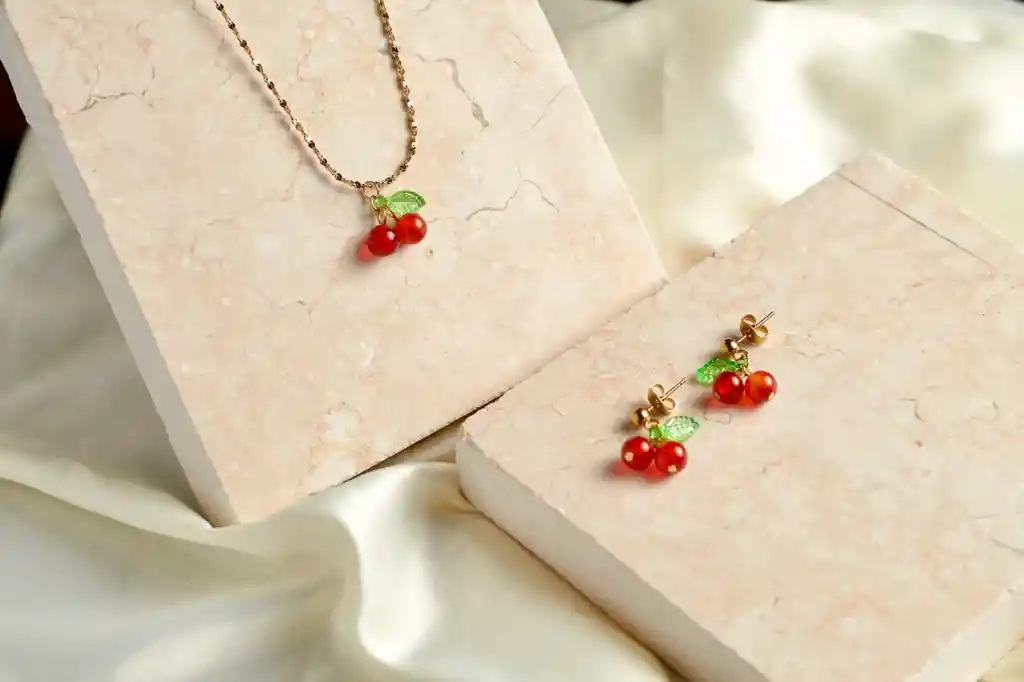 Set Cerezas / Acero con baño de oro de 18k Recomendaciones y cuidados: Para preservar el color te recomendamos no entrar a piscinas o el mar, tampoco aplicar líquidos y químicos tóxicos(perfumes, splash, cremas, alcohol, etc) Almacena tus joyas en los empaques de tela entregados con tus productos. POETRY no garantiza que el baño de oro y cualquier material de nuestros modelos dure para siempre. Las piezas bañadas y chapadas en oro, acero inoxidable, acero titanio, son por defecto, más frágiles y susceptibles de perder el color con el paso del tiempo.