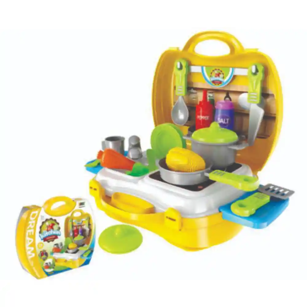 NOMBRE: SET COCINA DREAM MALETIN DESCRIPCION: Fabuloso Set de Cocina con Maletín ideal para que las pequeñas pasen horas emocionantes y entretenidas, recreando fantásticas historias culinarias y preparando deliciosas recetas. Este Juguete invita a las niñas a involucrarse en actividades lúdicas, que son altamente beneficiosos para ellas, estimulando su imaginación y creatividad mientras juegan con elementos de cocina. Incluye 26 piezas imitación de accesorios, utensilios de cocina y alimentos. - Dimensiones del producto empacado: 23X24X12 centímetros - Disponibilidad permanente - Despachos a nivel nacional - Tiempo de entrega aproximado 3 a 4 días hábiles contados a partir del día hábil siguiente al pedido. La plataforma te dará un tiempo de entrega mas preciso al momento de concretar la compra. Estamos atentos a resolver cualquier inquietud que tengas después de revisar las fotos y descripción del producto. JUGUETELANDIA más de 30 años ofreciendo diversión.