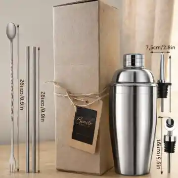 Coctelera de 550 ml en acero inoxidable, ideal para preparar cócteles fríos de forma práctica y rápida. Perfecta para usar en casa, reuniones o como regalo funcional y elegante. Capacidad: 550 ml - Material: Acero inoxidable - Uso: Bebidas frías y cócteles - Portátil y fácil de usar.