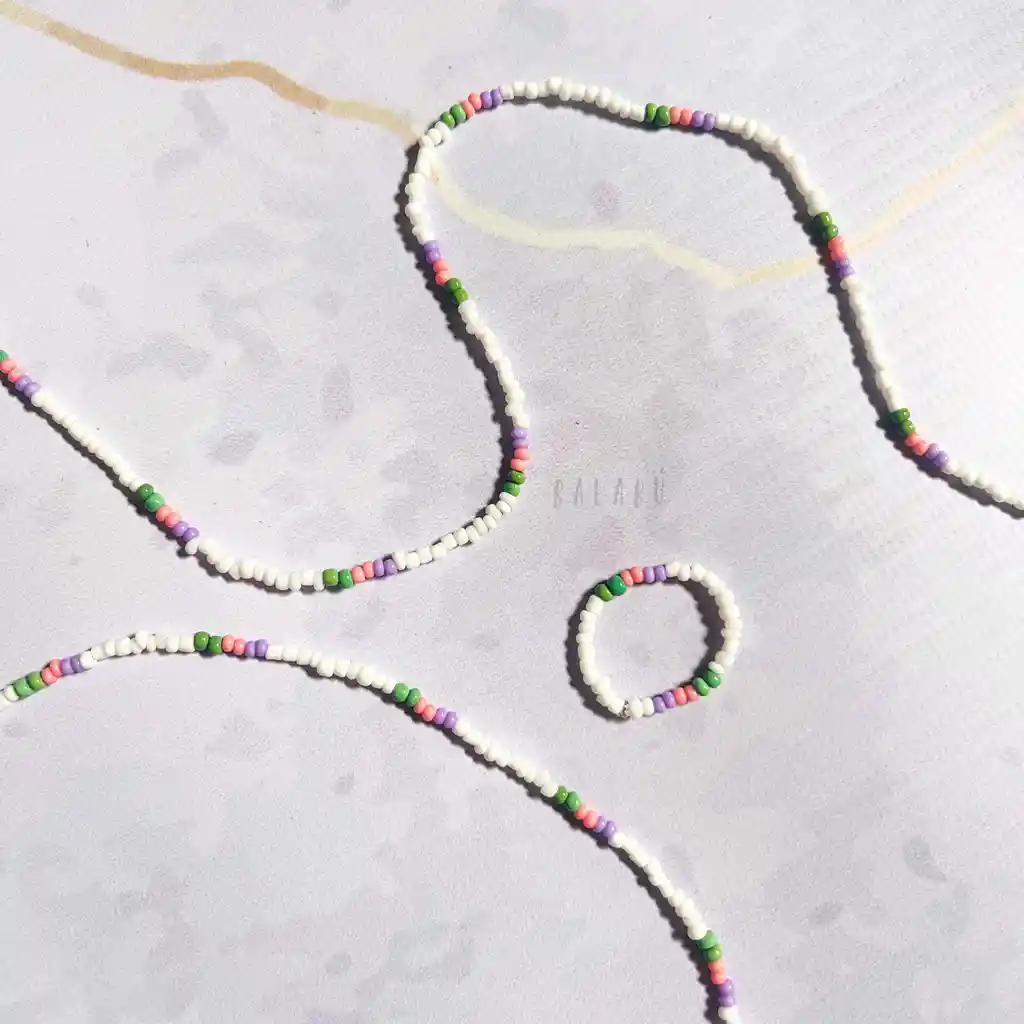 Set Collar + Pulsera + Anillo Blanco