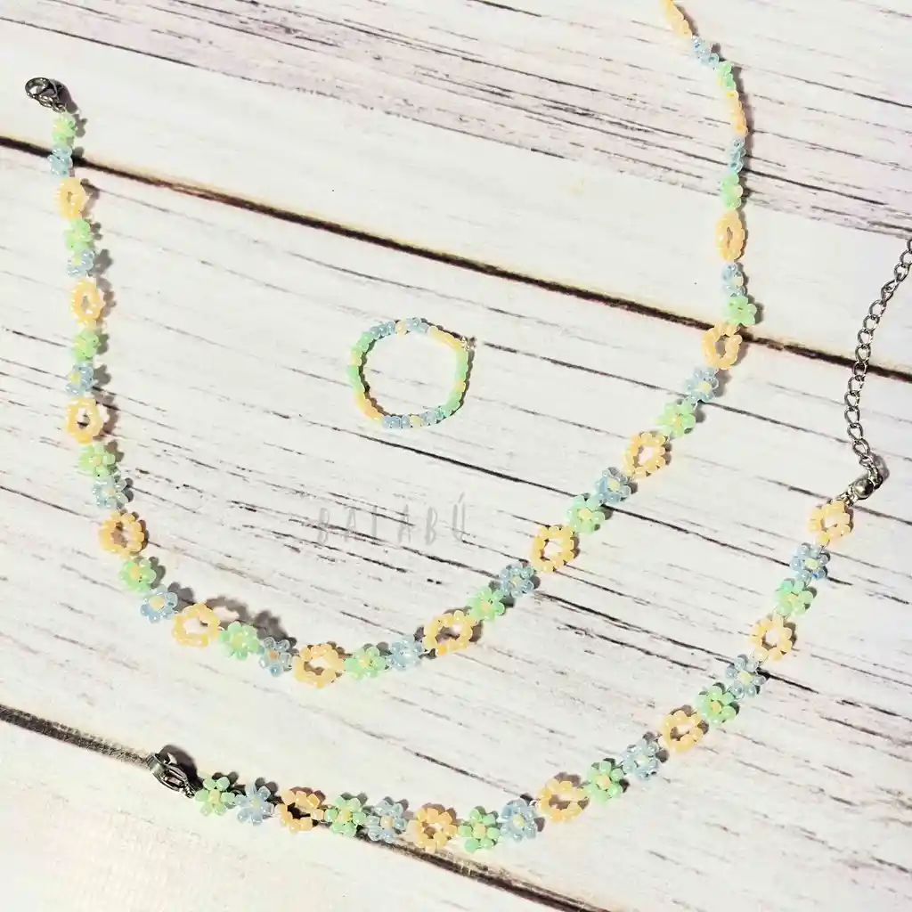 Set Collar + Pulsera + Anillo Florecitas Pastel