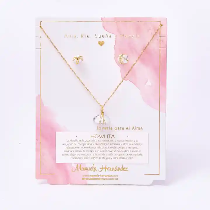 Este set Howlita es un suspiro de calma convertido en joya. 🤍✨ Su poderosa piedra transmite serenidad y equilibrio, ideal para cuando necesitas bajar el ruido mental, soltar tensión y volver a tu centro. Con detalles dorados delicados, es un set elegante y suave que te acompaña a vivir con más paz, paciencia y claridad… como un recordatorio diario de que tu tranquilidad también es prioridad. Características de tu Producto: - Tipo: Set de joyería. Incluye Collar y Aretes a juego. - Collar: Cadena fina dorada con dije central de jade con detalle tipo “envoltura” en alambre dorado - Aretes: Par de aretes dorados a juego con piedra central (diseño delicado) - Estilo: Elegante, minimalista y natural ideal para uso diario o looks sofisticados - Significado: Equilibrio, enfoque, calma mental, prosperidad y nuevos proyectos - Ideal para: Autoregalo, regalo para amigas/mamá, nuevos comienzos, metas y proyectos - Cuidado recomendado: Evita agua, perfumes y cremas guarda las piezas separadas para proteger el acabado y la piedra - Longitud de la cadena: 45 cm. - La cadena y los apliques plateados cuentan con Baño de Oro 18k. - Elaborado con Cuarzos 100% Naturales