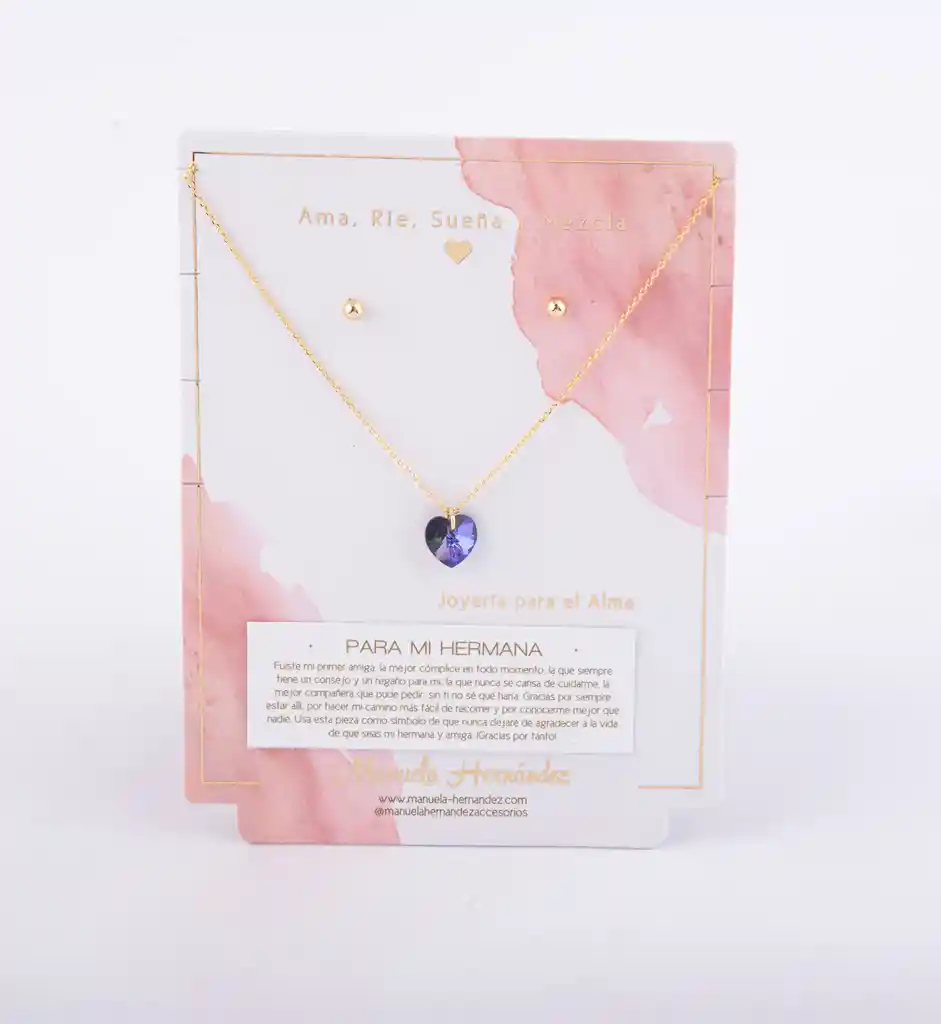 Cadena y apliques Dorados con Baño de Oro 18k. Elaborado con Cristal Swarovski. Longitud del collar: 45 cm. Incluye Collar y Aretes.