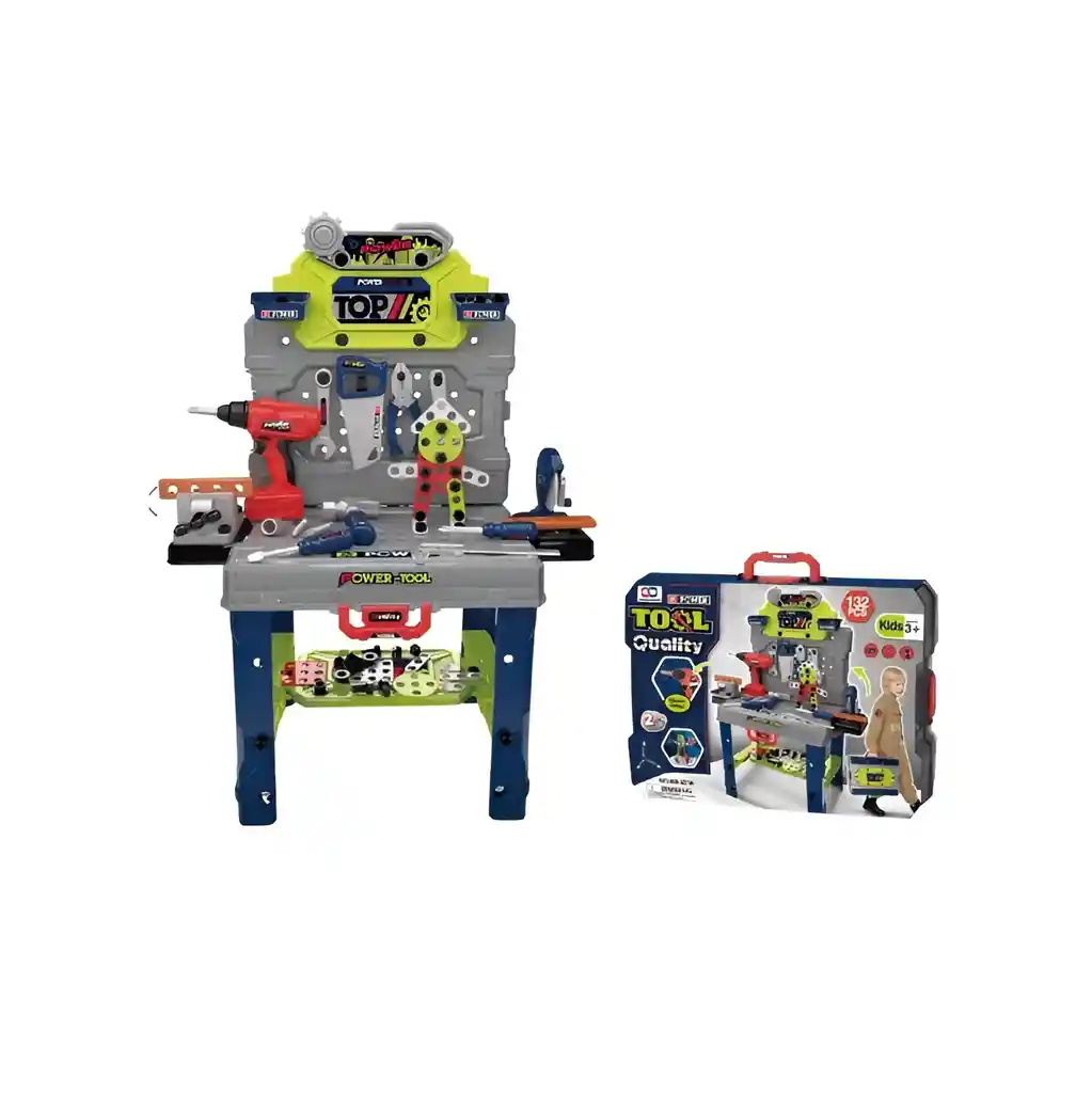 Descripción del producto: El set incluye una mesa de trabajo resistente y un conjunto completo de herramientas de juguete como martillo, destornillador, llave inglesa, sierra, pinzas, tornillos, tuercas y más. Fabricado en plástico ABS no tóxico, ofrece un diseño colorido, estable y seguro para el uso infantil. Su tamaño ergonómico permite que los niños jueguen cómodamente mientras organizan y usan sus herramientas como verdaderos profesionales. Características principales: Diseño tipo banco de trabajo: ideal para simular un taller real. Incluye más de 20 herramientas de juguete con acabados realistas. Material resistente y seguro: plástico ABS libre de tóxicos y con bordes redondeados. Montaje fácil y práctico: los niños pueden armar su propio taller. Espacio organizado: compartimientos y ganchos para guardar todas las piezas. Colores llamativos y diseño educativo, ideal para captar la atención y fomentar la curiosidad. Beneficios: Promueve la creatividad, el pensamiento lógico y la coordinación mano-ojo. Estimula la paciencia, la concentración y la resolución de problemas. Fomenta el juego de roles y la imaginación. Desarrolla habilidades motoras finas al manipular herramientas. Enseña valores como la organización y el trabajo en equipo. Modo de uso: Arma la mesa de herramientas siguiendo las instrucciones. Organiza los accesorios en su lugar correspondiente. Deja que los niños simulen reparar, construir y crear proyectos. Al finalizar, guarda todas las piezas para mantener el orden. Cuidados del producto: Limpiar con un paño seco o ligeramente húmedo. No sumergir en agua ni exponer al calor extremo. Guardar en un lugar seco y ventilado. Incluye: 1 mesa de trabajo infantil. Juego completo de herramientas de juguete. Manual de armado y organización. El Set de Mesa de Herramientas Infantil es mucho más que un juguete: es una herramienta de aprendizaje. Ideal para regalar, este banco de trabajo ayuda a los niños a desarrollar su imaginación, coordinación y amor por crear, ¡mientras se divierten como verdaderos constructores!