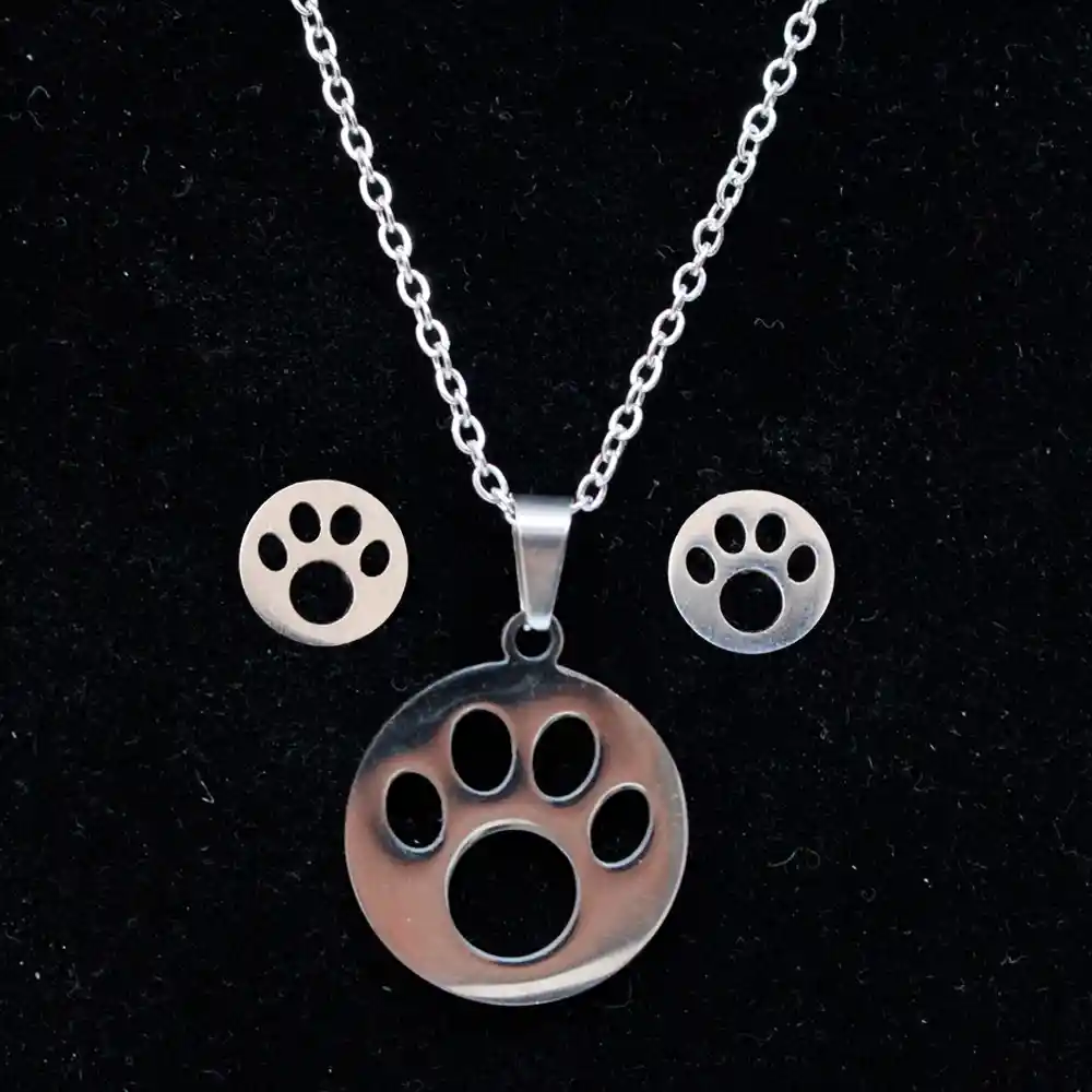 Set Conjunto Aretes Cadena Huellas Mujer Niña Moda Regalo