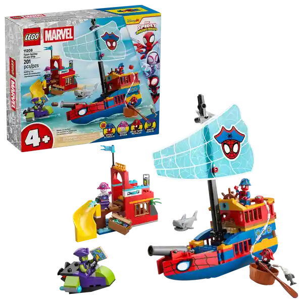 Contiene 201 Piezas. Marvel Spidey y Sus Sorprendentes Amigos Barco Pirata Del Equipo Spidey Juguete Para Niños y Niñas Mayores de 4 Años Set Para Construir y Jugar 4 Minifiguras 11208.