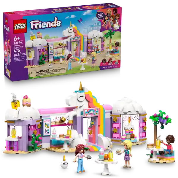 Contiene 475 Piezas. Friends Cafetería Sueños de Unicornio Juguete Decorado Con Unicornios Arcoíris Para Niñas y Niños a Partir de 6 Años 3 Minipersonajes Pasteles de Juguete y Mesas 42684.