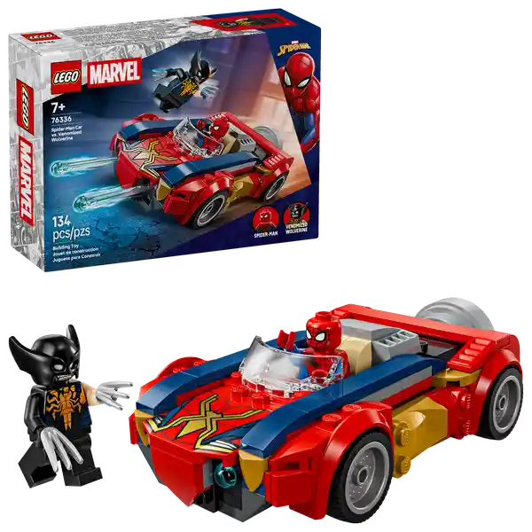 Contiene 134 Piezas. Marvel Auto de Spider-Man Vs. Wolverine Venomizado Juguete de Construcción Con Superhéroes Para Niños y Niñas Mayores de 7 Años Juego Con Auto y 2 Minifiguras 76336.