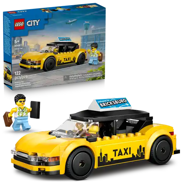 Contiene 122 Piezas. City Taxi Amarillo Modelo de Auto en Kit Con 2 Minifiguras Icónico Taxi en Versión de Juguete Para Niños y Niñas a Partir de 5 Años Vehículo Clásico 60487.