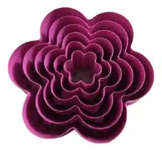Molde cortador en forma de Flor. Material plástico. Ideales para fondant, galletería y masas en general. Medidas 2.5/3/5/7/8 y 10 cms.