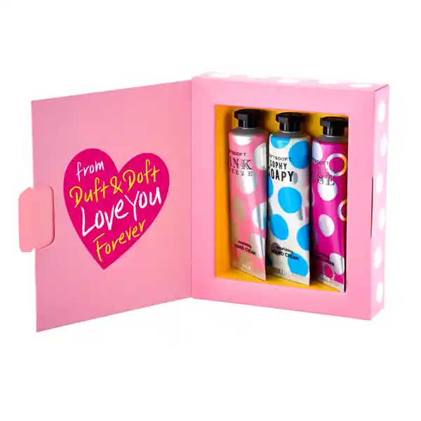 Contiene 3 de nuestras cremas de manos en una presentación de 25 ml. Son unas cremas de manos perfumadas y nutritivas que ayudan a suavizar y proteger tu delicada piel. Formuladas con ingredientes hidratantes como manteca de karité, acetato de tocofe