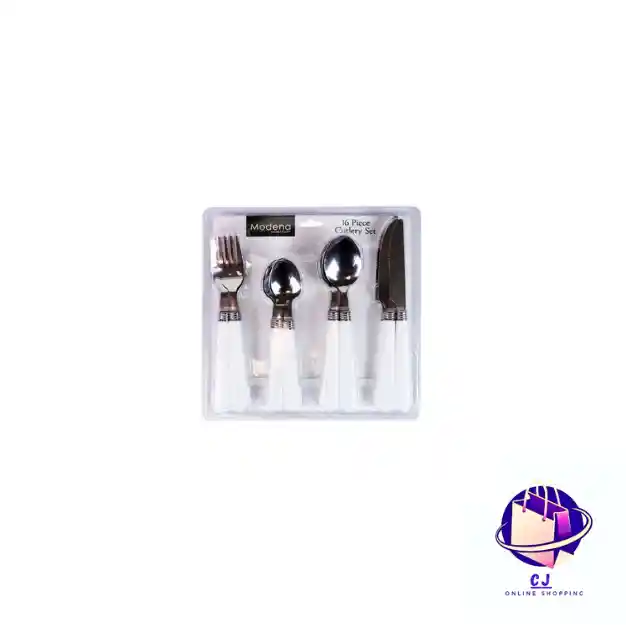 Juego completo de 16 cubiertos, ideal para 4 personas. Incluye cuchillos, tenedores, cucharas y cucharitas, fabricados en acero inoxidable resistente y duradero.