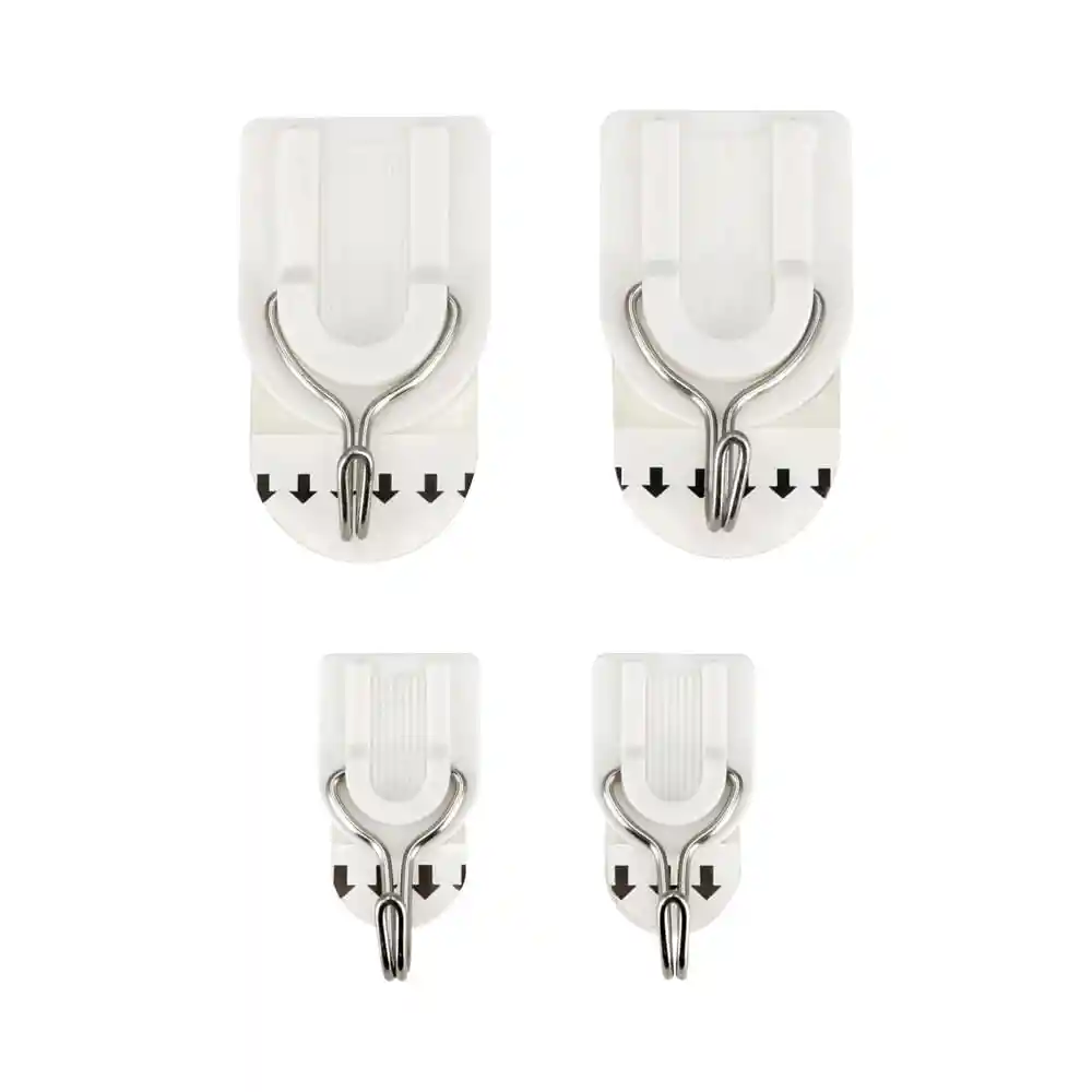 Set 10 Ganchos Adhesivos Gancho Metal 6 Ganchos Grandes Y 4 Ganchos Pequeños. No Dañan Las Paredes. Se Sujetan Fuertemente. Prácticas Y Fáciles De Usar. Resiste Hasta: Pequeña: 0.5 Kg Grande: 1.5 Kg Materialidad: 60% PP. 40% metal. Medidas: Alto: Pequeña: 3cm - Grande: 4cm - Ancho: Pequeña: 2cm - Grande: 5cm Cuidados: Recomendado Sobre Superficies Sobre 40ºc. Recomendado Sobre Papel Mural. No Es Recomendado Para Marcos Con Vidrio O Relojes. No Usar Sobre Camas O En Ningún Lugar Que Pueda Causar Lesiones. Somos Casaideas. una empresa innovadora. creativa. alegre y responsable. Llevamos más de 25 años comprometidos con la democratización del diseño y la búsqueda del bienestar de nuestros clientes a través de espacios y productos innovadores. funcionales y accesibles.