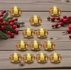 Ilumina tus espacios con este hermoso set de 12 velas LED decorativas, perfectas para crear un ambiente cálido, elegante y seguro. Cada vela tiene un diseño transparente tipo cristal y una luz cálida que imita el parpadeo de una llama real. Funcionan con pilas, lo que las hace prácticas y fáciles de ubicar en cualquier rincón sin necesidad de cables. Ideales para decoración navideña, cenas, eventos, centros de mesa o rincones acogedores. Velitas Seguras, decorativas y reutilizables, perfectas para darle un toque mágico a tu hogar.