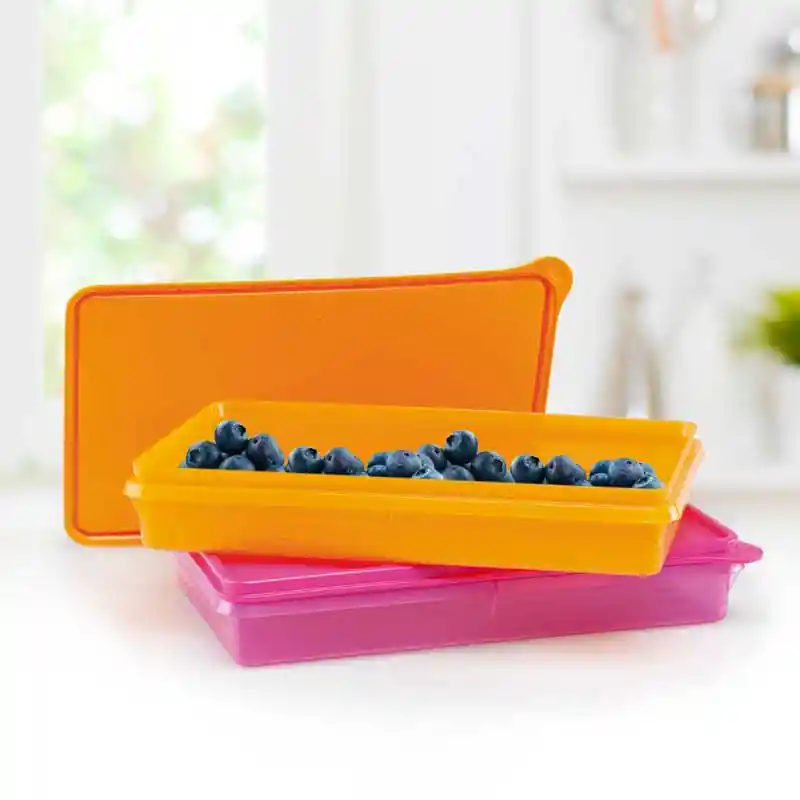 Las Cajas Organizadoras son perfectas para almacenar, refrigerar y conservar alimentos por más tiempo en tu nevera. Te permitirán optimizar espacio gracias a que son modulares y apilables. Estos colores le darán vida a tu nevera. Pestaña que te permite abrir con facilidad. Producto plástico libre de BPA (Bisfenol A), Dile No a los plásticos de un solo uso.Dimensiones: 29.7 x 18.8 x 5.4 cm de alto c/u