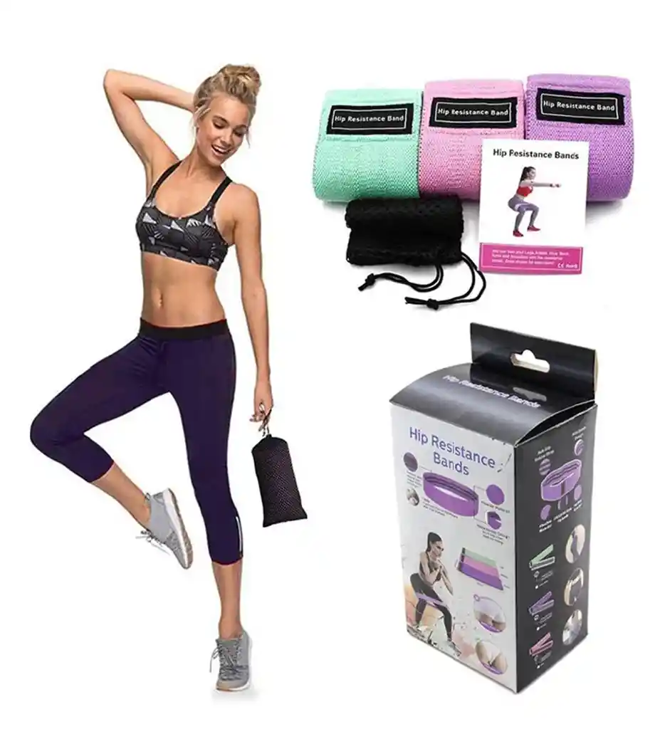 Este set de 3 Bandas Elásticas de Resistencia de Tela Loop para Ejercicio ofrece tres niveles de intensidad para adaptarse a tus necesidades de entrenamiento. - Nivel Alto: 76*8cm ( 40Ibs-50Ibs / 18kg-22.5kg ) - Banda Morado - Nivel Medio: 76*8cm ( 25Ibs-35 Ibs / 11.3kg-15.8kg ) - Banda Rosa - Nivel Bajo: 76*8cm ( 15Ibs-25Ibs / 6.8kg-11.3kg ) - Banda Verde El paquete incluye tres bandas de resistencia y una bolsa de transporte. Las bandas vienen en tres colores distintos para diferenciar los niveles de resistencia (Verde - Ligero, Rosa - Medio, Morado - Pesado), permitiéndote incrementar gradualmente la intensidad de tu entrenamiento. Estas bandas son ideales para trabajar caderas, glúteos y piernas, ayudándote a realizar sentadillas correctamente para obtener caderas esculpidas y bien tonificadas. Son aptas para cualquier persona que desee aumentar la movilidad o la resistencia muscular y la fuerza. Estas bandas no se enrollarán ni deslizarán durante los entrenamientos, a diferencia de las bandas de resistencia de látex / goma. Están cosidas con un tejido elástico de algodón y poliéster superior y contienen látex de naturaleza elástica en el interior, lo que las hace más amigables con la piel, duraderas, estables y antideslizantes. Este conjunto de bandas de resistencia es perfecto para sentadillas, caminatas laterales, glúteos, ejercicios de caminar de ida y vuelta, Crossfit, Insanity, Yoga, Pilates, Musculacion, Entrenamiento de fuerza. Con solo 10-25 minutos de entrenamiento al día, notarás la diferencia.