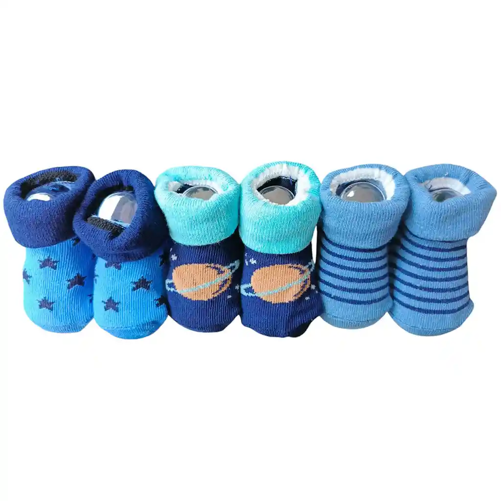 El Set de 3 pares de medias para bebé es ideal para mantener a tu bebé con lo mas cómodo y a la moda. Diferentes diseños se adaptan a varios cambios de ropa, además con su material suave y antialérgico olvídate de las molestias o irritaciones en su delicada piel. Características: Material: las medias del Set de 3 pares de medias para bebé estan hechas de 73% Algodón, 18% Poliéster, 9% Spandex Práctico set para regalo, el Set de 3 pares de medias para bebé viene en una pequeña caja lista para un regalo. Diferentes diseños y colores, café azul claro y oscuro, el Set de 3 pares de medias para bebé es ideal para todos los bebés desde una edad de 0 a 12 meses.