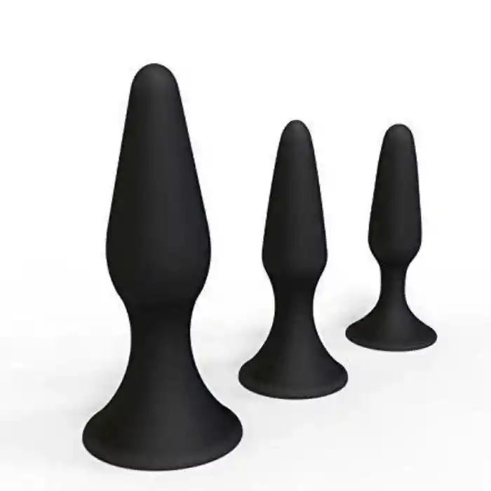 Set de 3 Plugs Anales de Silicona. Este set de 3 plugs anales en silicona ofrece tamaños graduales para una experiencia cómoda. Comienza con el más pequeño y avanza gradualmente. La base facilita el manejo y la extracción segura. Recuerda usar lubricante. Almacena en un lugar fresco y seco, lejos de la luz solar. ¡Descubre nuevos niveles de placer con nuestros juguetes sexuales! Dimensiones • Longitud plug pequeño: 10.4 cm – Diámetro: 2,5 cm • Longitud plug mediano: 12,7 cm – Diámetro: 3,0 cm • Longitud plug grande: 15,2 cm – Diámetro: 3,8 cm Materiales Silicona Médica Segura para el cuerpo no tóxica