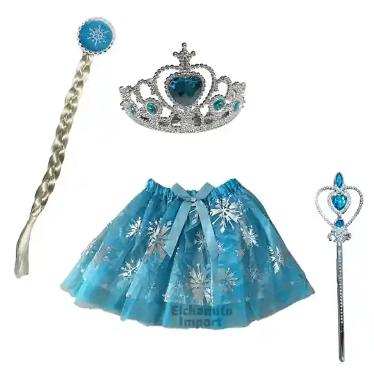 SET DE 4 CORONA, GUANTES, TRENSA Y CETRO DE FROZEN ELSA PARA NIÑA DAMA PARA HALLOWEEN