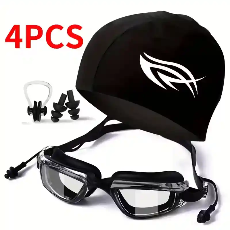 Set de 4 piezas de gafas de natación ajustables, gorro de natación, clips para la nariz y tapones para los oídos para hombres y mujeres | Ideal para actividades de natación. Detalles del producto. Usuario: Hombre Material principal: PC Grupo de edad aplicable: 18 años o más Protección solar: No Anti-vaho: No