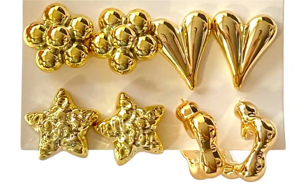 Set de 4 Topos Margarita Chunky, Corazon, Estrella Chunky y Candonga globito dorada