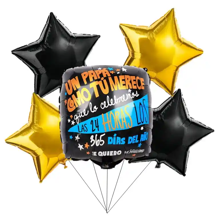 5 Globos Metalizados Feliz dia papa celebremos el dia del Padre contenido: 1 Globo redondo de 18 " 4 Globos estrella 18" Los globos se despachan sin inflar Disponibilidad inmediata