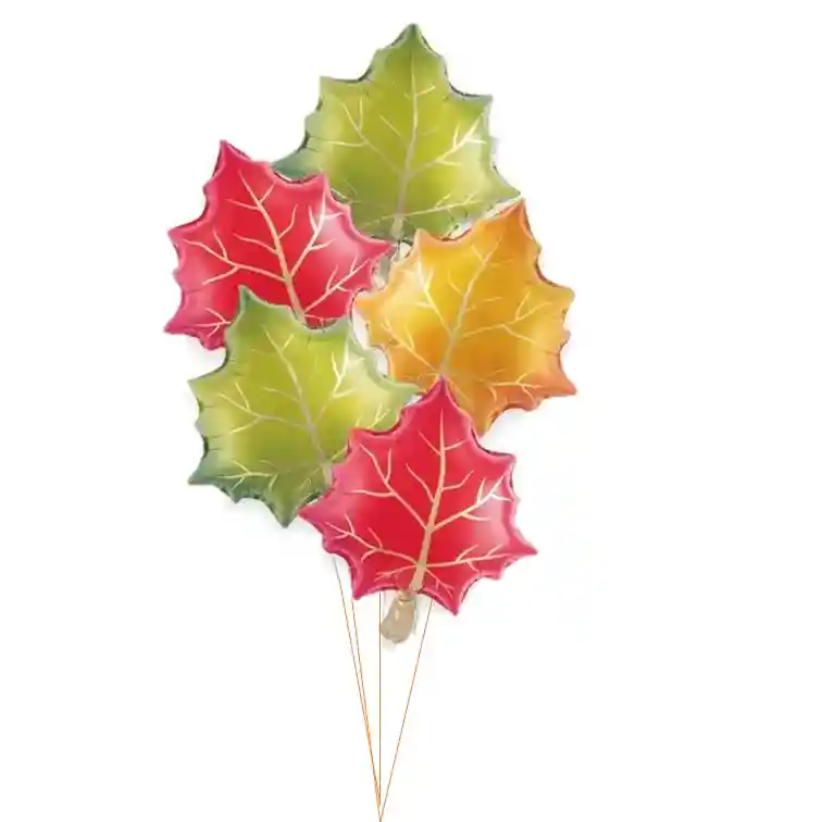 set de 5 globos metalizados en forma de hoja otoño cada hoja es de 51*60cm 5 unidades globos se envian sin inflar tal cual se ve en la fotografia