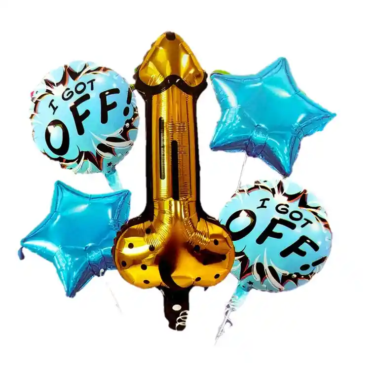 1 Globo p ene dorado 50x35cm2 2 globos I got Off 45x45cm 2 Globo estrella azul 45x45cm Globos se envian sin inflar