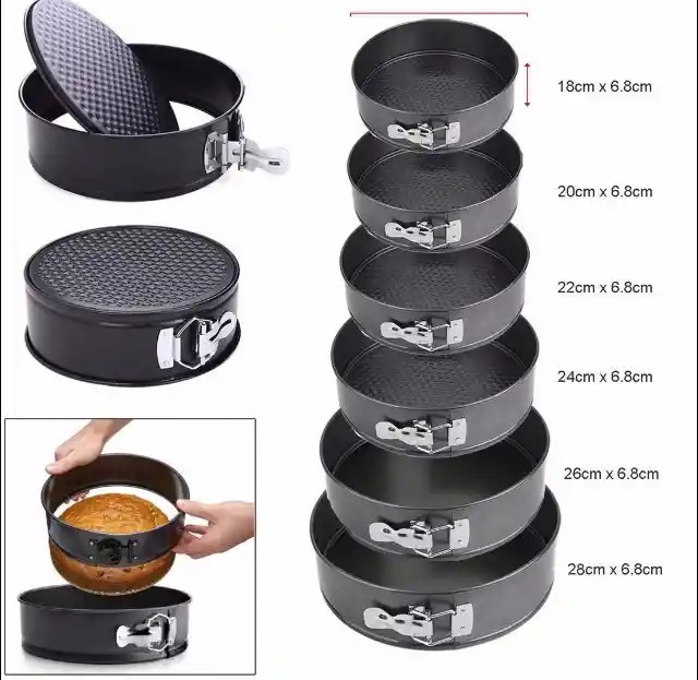 Prepara tortas en forma redonda, ahora es más fácil desmoldar gracias a su sistema práctico y eficiente ! Incluye: Molde 18 cm Molde 20 cm Molde 22 cm Molde 24 cm Molde 26 cm Molde 28 cm Medidas: 18,20,22,24,26,28 cms Material: Fabricado en material antiadherente